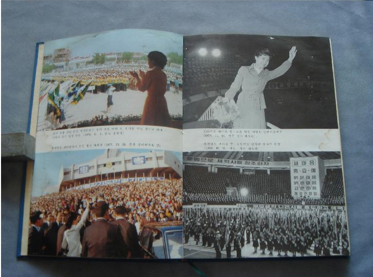 | ▲ 박근혜 의원이 1979년 쓴 <새마음의 길>. 좌측 상단, 여학생들로 부터 군대식 사열을 받고 있는 모습이 눈에 띈다ⓒ새마음의 길 |