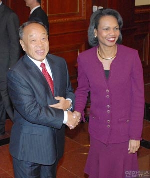 한편 평양을 방문하고 돌아온 탕자쉬안 국무위원이 "방문이 헛되지 않았다"고 말해 김정일 북한 국방위원장이 전향적인 태도를 취하지 않았냐는 관측이 나오고 있는 가운데 원자바오 총리는 라이스 장관과의 접견에서 지나친 낙관론을 경계하는 조심스런 태도를 보였다.