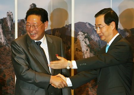 남측 수석대표인 한덕수 총리는 구체성과 실사구시에 무게를 뒀다. 한 총리는 이날 정오께 회담장인 서울 쉐라톤워커힐호텔에 도착한 김영일 총리와의 첫 환담에서 다산 정약용을 화두로 올렸다.