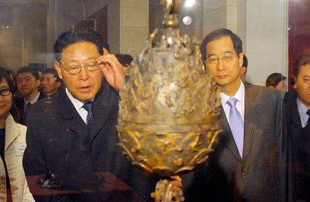 참관이 끝난 뒤 김 총리는 '민족의 유산'이라고 쓰여진 방명록에 서명했다. 박물관 측은 김 총리에게 유물을 설명해 놓은 종합 도록(圖錄)과 모형금잔을 선물로 주었고, 김 총리는 "고맙다"고 인사했다.