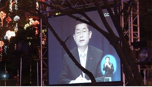 저녁 7시 반 MBC 앞. 각 후보들이 토론회장으로 속속 도착하기 시작하고, 문국현 후보도 대기실에 자리를 잡는다. 한편 밖에서는 각 진영의 응원전이 열기를 더해가고, 드디어 토론회가 시작된다.