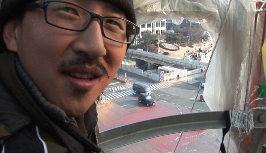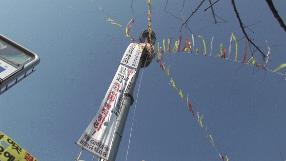 땅이 아닌 곳에서 구정을 쇠는 사람도 있습니다. GM대우 비정규지회 노동자 박현상씨입니다. GM대우 비정규지회 노동자들은 노조를 만들었다는 이유로 해고된 후 41일째 고공시위를 벌이고 있습니다.