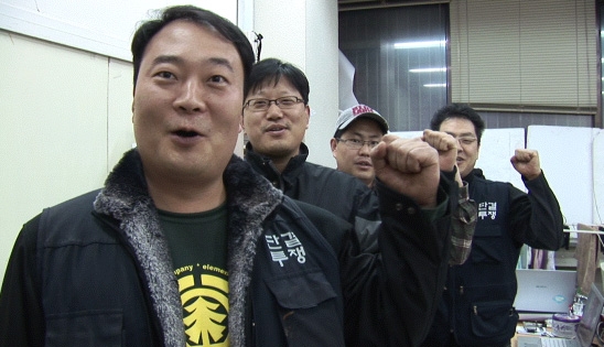 정인열(코스콤 비정규지부 부지부장): "노동부나 국회, 법원에서도 이미 그 동안 코스콤이 긴 세월 동안 위장도급을 했고 불법파견을 했다는 것이 다 드러났는데도 코스콤은 시간 끌기로 만 일관하고 있고, 정권이 바뀌면 더 싸우기가 힘들어 질 것으로 예상이 되요.