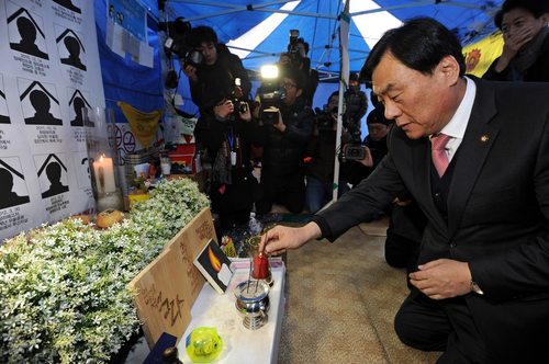 | ▲ 민주통합당 박기춘 원내대표가 4일 오후 서울 중구 덕수궁 대한문 앞 쌍용차 분향소를 방문해 헌화분향하고 있다. ⓒ연합뉴스 |