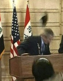 사담 후세인 정권이 대량살상무기를 보유하고 있다는 조작된 정보로 이라크 침공을 강행한 부시 대통령에 대해 이라크인들이 이처럼 분노를 터뜨리는 것에 공감하는 이들이 적지 않다.