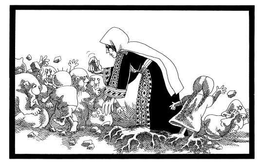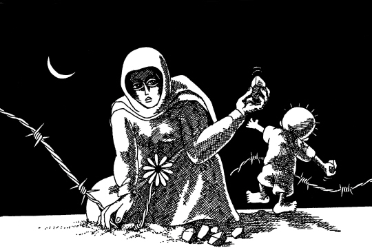 | 1936년 팔레스타인 땅에서 태어난 나지 알 알리(Naji Al Ali)는 촌철살인의 필봉과 독특한 표현 양식으로 팔레스타인의 비극을 고발한 전설의 카투니스트입니다. 1948년 이스라엘 건국과 함께 팔레스타인에서 쫓겨나 레바논 시돈의 난민촌에서 자란 나지는 레바논의 잡지 <알 탈리아>에서 만평을 그리기 시작했습니다. 이후 1970년대 레바논의 유명한 <알 사피르> 신문에서 일하기도 했던 나지는 83년부터 87년까지 쿠웨이트의 <알 카바스> 신문에 카툰을 연재했습니다. 1982년 이스라엘의 레바논 침공 당시 이스라엘의 지원을 받은 기독교 민병대가 사브라와 샤틸다 난민촌에서 3000여 명의 팔레스타인 난민들을 학살하는 장면을 목격한 나지는 수 백 점의 만평을 통해 이스라엘과 미국, 심지어 팔레스타인 해방기구(PLO)가 저지르고 있는 부조리를 고발했습니다. 그의 그림에는 언제나 11살 가량의 꼬맹이 한달라(아랍어로 '고통')와 꽃, 철조망, 독보리, 열쇠 등의 상징물이 등장해 팔레스타인인들의 평화에 대한 갈망을 극적으로 묘사했습니다.(각 상징물에 대한 설명은 카툰갤러리 다음 편에) 그런 나지였기에 그는 늘 투옥과 도피, 망명, 암살의 위협 속에 살아야만 했습니다. 20대 초반 이미 감옥에 다녀 온 나지는 그의 카툰을 탐탁지 않게 생각하는 수많은 비밀조직들에 의해 현상범 리스트 0순위에 올랐습니다. 그런 위협을 견디다 못해 1985년 영국으로 망명했지만, 2년 뒤 이름 모를 괴한의 총탄에 머리를 맞고 끝내 숨을 거뒀습니다. 이스라엘의 침공으로 수백명의 팔레스타인 사람들이 처참하게 죽어가고 있는 지금 <프레시안>은 나지 알 알리의 그림을 독자 여러분들게 소개합니다. 작년 9월 한국에서도 전시됐던 이 만평들은 팔레스타인을 넘어 아랍인들의 생각과 일상생활, 그리고 부당한 힘과 권력 아래 그들이 얼마나 핍박당하고 있는지를 온전히 보여줍니다. 이 그림에 대한 저작권은 그의 아들 칼리드 알 알리가 소유하고 있습니다. <편집자> |