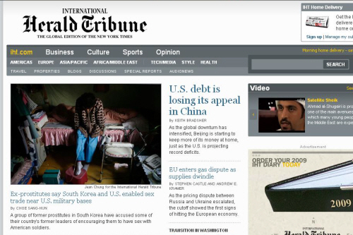 | ▲ <IHT> 인터넷판 메인 페이지에 실린 기사 |