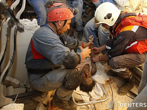| ▲ 지진으로 매몰된 아이티 주민들이 구출되고 있다. ⓒ로이터=뉴시스 |