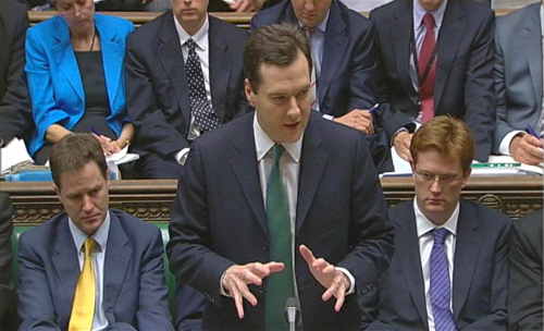 | ▲ 조지 오스본 영국 재무장관이 22일 의회에서 대대적인 긴축재정안과 은행세 도입 계획 등을 발표하고 있다. ⓒ로이터=뉴시스 |