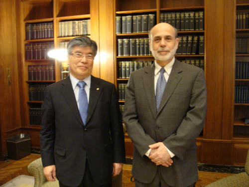 | ▲ 김중수 한국은행 총재와 벤 버냉키 Fed 의장. 두 중앙은행장은 오락가락하는 정책 진단과 대응으로 시장의 불신을 사고 있다는 공통점을 지녔다. ⓒ로이터=뉴시스 |