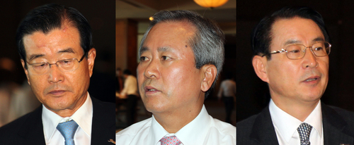 | ▲ 동반 퇴진 위기에 몰린 '신한금융 3인방'(왼쪽부터 신한금융지주 라응찬 회장, 신한금융지주 신상훈 사장, 이백순 신한은행장). ⓒ연합뉴스 |