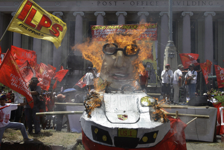 일각에서는 이런 광경에 대해 언뜻 이해하기 힘들어한다. 필리핀은 지난해 7%가 넘는 경제성장률을 달성하는 등 거시경제적 지표가 호전되고 있기 때문이다. 노동자들에 의해 '화형식'을 당한 아퀴노 대통령 스스로도 의아해할지 모른다.