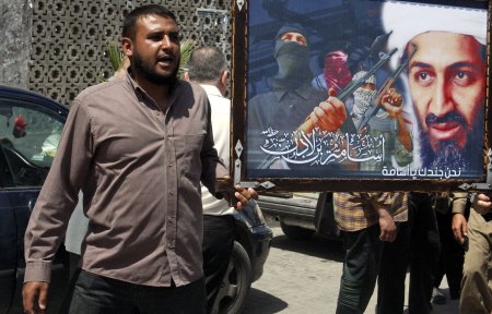 | ▲ 오사마 빈 라덴이 미국에 의해 '암살' 당했다는 분노가 이슬람권에서 퍼져가고 있다. 팔레스타인에서 많은 사람들이 빈 라덴의 초상을 들고 성전을 외치는 시위에 나서고 있다. ⓒAP=연합 |