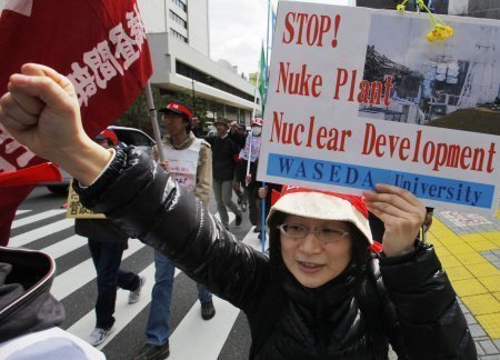 | ▲ 일본의 시민들이 원전 가동 즉각 중단과 건설계획 폐기를 요구하며 시위를 벌이고 있다. 후쿠시마 사태 이후 두 달 사이에 찬반 여론의 비율이 역전됐다. ⓒAP=연합 |