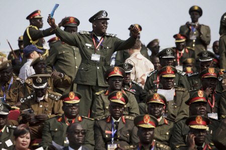 | ▲ 지난 9일 남수단의 독립기념식에서 수단인민해방군 군인들이 환호하고 있다. 하지만 이들은 남수단의 권력층으로 많은 사람들은 남수단이 '그들만의 세상' 이 될 것이라는 우려도 팽배하다. ⓒAP=연합 |