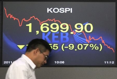 | ▲ 9일 코스피 지수가 오전 장 중 1800선에 이어 1700선까지 붕괴되는 패닉 현상을 보였다. ⓒ연합뉴스 |