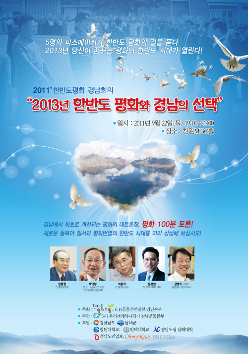 '2013년 한반도 평화와 경남의 선택'이라는 주제로 열리는 이날 행사에서는 임동원 전 통일부 장관, 백낙청 서울대 명예교수, 이종석 전 통일부 장관, 문성현 전 민주노동당 대표가 강병기 경남도 정무부지사의 사회로 토론을 펼친다.