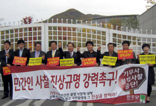 | ▲ 지난 21일 민주당 신학용, 최재성 의원은 경기도 과천시 기무사령부를 방문해 민간인 사찰을 규탄했다. ⓒ뉴시스 |