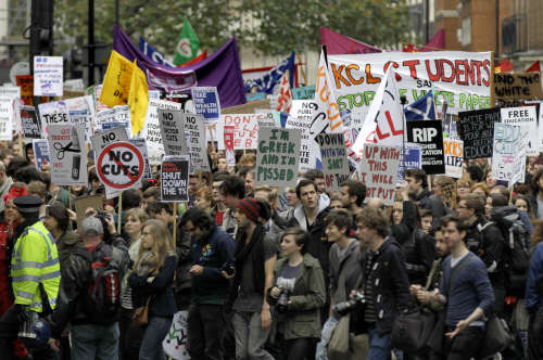 대학생들의 시위는 영국 정부가 지난해 재정긴축 정책의 일환으로 대학에 대한 정부 보조금을 삭감하는 대신 연간 3290파운드(590만 원)였던 등록금 상한선을 철폐하고 최대 9000파운드(1620만 원)까지 받을 수 있도록 한 것에 대한 반발이다. 변경된 등록금 제도는 내년 9월 시작되는 학기부터 적용된다.