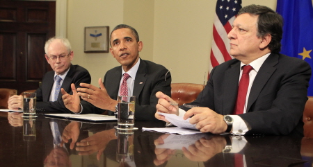 오바마 대통령은 헤르만 반롬푀이 유럽연합 정상회의 상임의장 등과 회담을 가진 뒤 기자회견에서 "유럽 경제는 미국에 대단히 중요하며, 만약 유럽 경제가 위축된다면 미국내 일자리 창출도 더 힘들어질 것"이라고 덧붙였다.