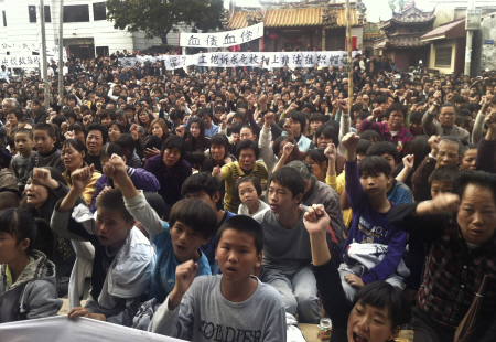 | ▲ 남녀 노소를 가리지 않고 시위에 나선 우칸 마을 주민들. ⓒAP=연합 |