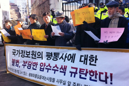 국정원과 경찰은 이날 오전 평통사 오혜란 사무처장과 김종일 현장팀장, 유정섭 인천평통사 사무국장, 김강연 교육부장을 대상으로 이들의 사무실과 거주지, 평통사 서버 관리업체인 '진보네트워크' 등에 대한 압수수색을 진행했다.