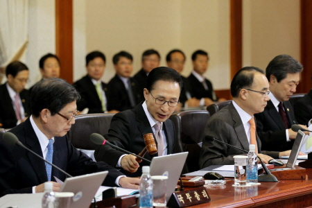 | ▲ 이명박 대통령이 17일 청와대에서 불법 사금융 근절 대책 회의를 주재하고 있다. ⓒ청와대 |