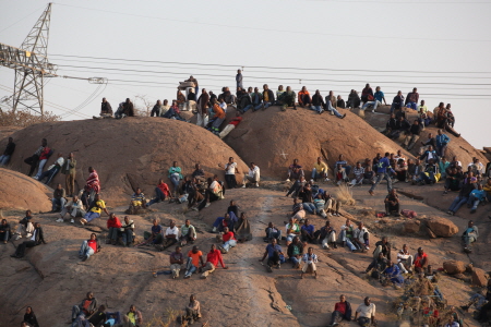 | ▲ 학살까지 초래한 남아공 마리카나 광산에서 광부들이 2주째 작업을 거부한 채 임금인상을 요구하고 있다. ⓒAP=연합 |