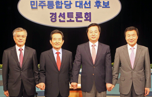| ▲31일 부산MBC에서 열린 부산·울산·경남지역 TV토론에 참석한 민주통합당 문재인, 정세균, 김두관, 손학규 후보(왼쪽부터). ⓒ뉴시스 |