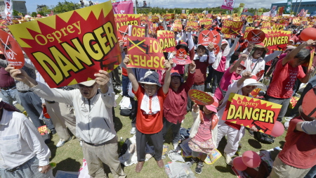 이때문에 일본 시민들은 "우리는 세계에서 가장 위험한 오스프리를 원치 않는다"는 현수막을 펼쳐 들고 반대 시위를 벌였다.
