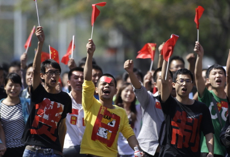 | ▲ 지난 주말 16만명이 참가한 대규모 반일시위가 중국 전역에서 벌여졌다. 베이징에서는 일본 대사관 앞에 1만 여명이 모여 1989년 톈안먼 사태 이후 최대 시위가 벌어졌다. ⓒAP=연합 |