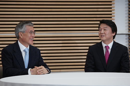 | ▲6일 서울 백범기념관에서 회동 중인 문재인, 안철수 대선후보. ⓒ프레시안(최형락) |