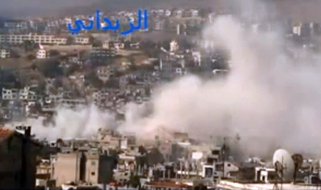 | ▲ 시리아 수도 다마스쿠스 외곽에서 반군이 장악한 지점에 정부군이 포격을 가해 연기가 솟아오르고 있다. . 반군의 공세가 거세지자 궁지에 몰린 시리아 정권이 '화학무기를 동원할지도 모른다는 우려가 커지고 있다. |