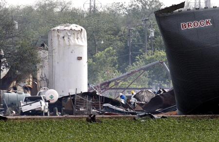 | ▲ 지난 17일 핵폭탄이라도 터진 것처럼 '버섯구름'과 강력한 지진파까지 초래한 텍사스 주 비료공장 폭발사건 현장 ⓒAP=연합 |