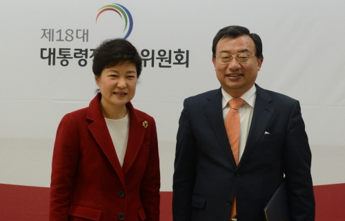 | ▲박근혜 대통령은 3일 이정현 청와대 정무수석을 홍보수석으로 임명했다. 사진은 지난 1월 당선인 신분이던 박 대통령과, 당선인비서실 정무팀장 임명장을 받은 이 수석. ⓒ뉴시스 |