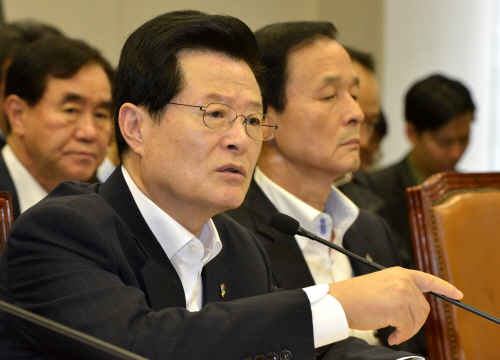 | ▲허태열 청와대 비서실장이 21일 국회 운영위원회에 출석해 의원들의 질의에 답하고 있다. 눈을 감은 김장수 국가안보실장의 모습이 허 실장 뒤로 보인다. ⓒ뉴시스 |
