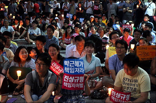 | ▲지난 20일 서울 청계광장에서 열린 국정원 대선개입 규탄 촛불집회 참석자들의 모습. ⓒ프레시안(허환주) |