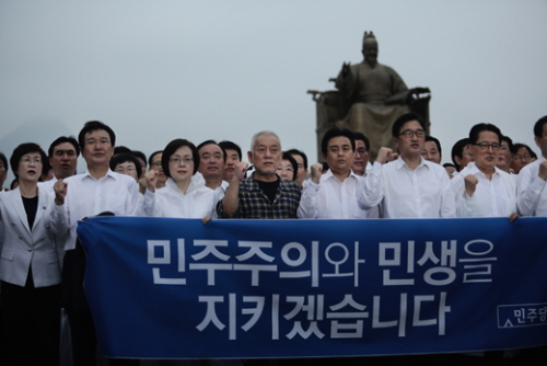 민주당 김한길 대표는 이날 오전 서울시청 앞 광장에서 열린 의원총회 및 '민주·민생살리기 출정 결의대회'에서 국가정보원 개혁과 이른바 '민생' 문제 등 양 갈래의 의제를 모두 챙기는 강한 투쟁을 해나가겠다고 재차 밝혔다.