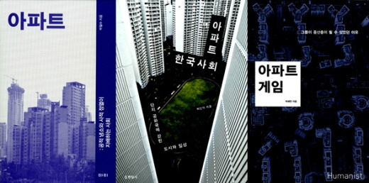 6월에 나온 박철수(서울시립대학 건축학부 교수)의 <아파트>(마티 펴냄)는 일제 강점기 때부터 현재까지 아파트에 대한 기록을 망라하며 아파트를 둘러싼 다양한 욕망, 아파트란 건축 형태가 개인에 미치는 영향을 추적합니다. 7월에 나온 박인석(명지대학교 주거건축 전공 교수)의 <아파트 한국 사회>(현암사 펴냄)의 관심사는 '아파트 단지'에 있습니다. 그는 한국 사회를 규정한 주거 형태가 '단지화'이며 이것이 전략적이고 의도적인 정책 선택의 결과라고 역설합니다. 그리고 최근, 디자인 연구자로서 아파트에 천착해 온 박해천이 <콘크리트 유토피아>(자음과모음 펴냄)에 이어 <아파트 게임>(휴머니스트 펴냄)을 펴냈습니다. 이 책에서 그는 '하우스푸어'가 된 베이비부머부터 90년대의 '청춘'에 이르기까지 다양한 화자를 내세워 대한민국 중산층 흥망사를 그려냅니다.