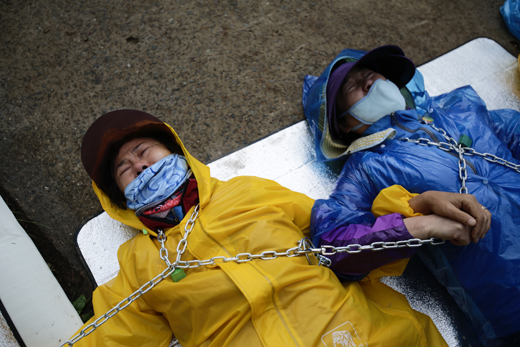 주민 9명, 쇠사슬로 몸 연결하고 단식