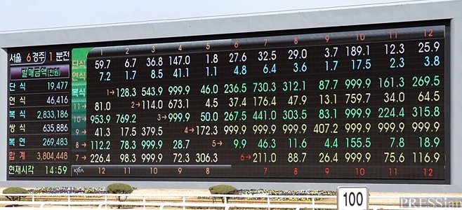 □ 경마장 매출의 2/3가 화상경마 : 마사회의 자료에 따르면 2004년 경마매출액은 5조3302억 원이었고, 이 중 장외발매소가 차지하는 매출이 전체 매출 중 약 63%를 차지했다. 19개의 장외발매소를 갖추고 있는 경륜·경정도 장외발매소의 매출이 70% 수준인 것으로 전해졌다. 어느새 배보다 배꼽이 커진 셈이다.