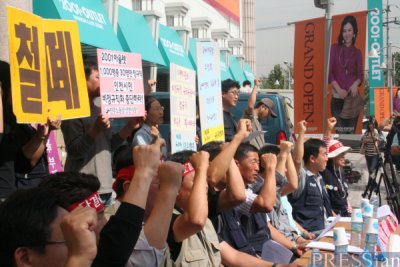 이남신 이랜드노조 수석부위원장은 "다른 매장의 경우 현금을 다루는 계산원은 대부분 정규직이지만 부평점은 한 층에 한 명을 제외하고는 전부 비정규직"이라며 "그나마 지금은 오픈을 준비하고 있는 시점이어서 33명이지만 매장 개장을 마치고 어느 정도 영업이 안정단계에 들어서면 정규직의 비율은 더 줄어들 수밖에 없다"고 주장했다.