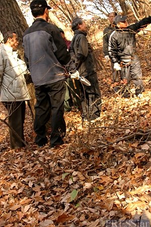 11일 나무들이 땅에 제 나뭇잎을 덮어 겨울 채비를 하고 있는 경기도 포천시 광릉 숲. 그 중에서도 민간인의 출입이 통제돼 사람의 발길이 닿지 않는 깊은 숲에서 ㈔한국산삼학회와 국립산림과학원 산림생산기술연구소가 주관하는 '산삼 종보존을 위한 복원사업'의 일환으로 '산삼 씨 뿌리기' 행사가 열렸다.