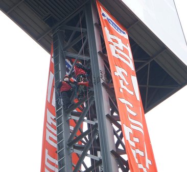 삼성 에스원의 영업전문직들이 일방적인 계약해지 이후 이를 받아들일 수 없다며 만든 단체인 '삼성에스원노동자연대(위원장 김오근)'에 따르면, 조합원 전모 씨와 진모 씨가 이날 새벽 "억울한 처지를 알리고 싶다"며 대형 간판에 올라간 것.