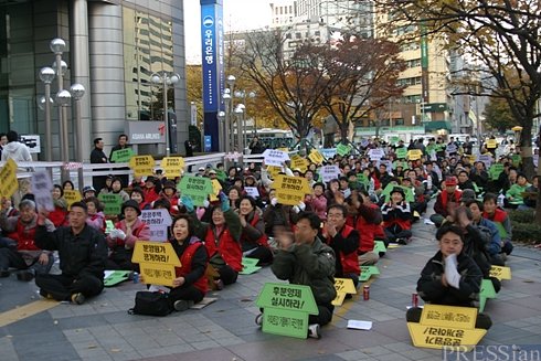 날아다니는 새들도, 기어다니는 달팽이도 집이 있는데 사람들이 집이 없습니다. 정부는 '한미FTA 반대 시위'에 대해 "더 이상 관용은 없다"고 했는데, 지금 국민들 중 이 정권에 관용을 배풀고 싶은 사람이 얼마나 있겠습니까. 우리나라 부동산 값 다 합하면 캐나다를 6개 살 수 있고, 5년 동안 부동산 불로소득만 600조 원이라고 합니다. 그런데도 불로소득에 대한 세금은 10%입니다. 그 많은 돈은 다 어디에 갔습니까. 한국에서 가장 잘 나가는 당이 어딘지 아십니까? 한나라당? 잘 못 보셨습니다. '불한당'(不汗黨)입니다. 땀 한 방울 안 흘리고 천문학적 불로소득을 올리며 서민들의 피눈물을 짜내 이익을 챙긴 재벌 건설사들이 불한당입니다. 그리고 투기 불쏘시개를 계속 공급해준 정부와 부동산 광고 열심히 실어 준 수구 언론들도 불한당입니다. 노무현 대통령은 끊임없이 신도시 계획을 내놓으며 부동산 5적과 충실한 동맹을 맺어 왔습니다. '투기 무심당'이라는 비판 맞습니다. 망국적 투기를 잡을 만큼 정당적 실천을 못한 것에 송구스럽습니다. 하지만 서민정당인 민주노동당이 불한당에 맞서 당당하게 투쟁할 것을 약속드립니다. 부동산 정책은 반지하, 비닐하우스, 옥탑방에 사는 160만 주거 빈곤층에 최우선을 두고, 서민에게 주거보조금을 지급하는 등 1700만 서민들이 주거 안정을 이룰 수 있도록 하겠습니다. 그러기 위해 정부가 소유한 땅은 민간에 넘기지 않고 정부가 직접 집을 지어 반 값에 서민들에게 공급할 수 있도록 해야 합니다. 더불어 다주택자에 대해서는 신규분양을 엄격히 제한해야 합니다. |