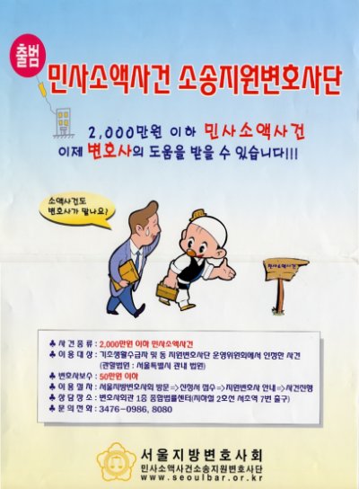 "저소득층 2000만 원 이하 민사소액 사건, 변호사회가 책임집니다"