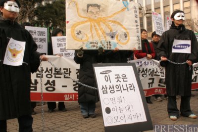 기자회견 참가자들은 "2005년 휴대전화 위치추적사건, 2006년 X파일 검·경·언 권력 유착, 에스원 노동자 대량해고, 시사저널 사태와 관련한 언론 통제 등 삼성과 관련한 인권유린과 부정부패 사건이 연이어 터지고 있다"며 "삼성으로 인해 하루도 바람 잘 날이 없는 것이 지금의 대한민국의 현 주소"라고 개탄했다.