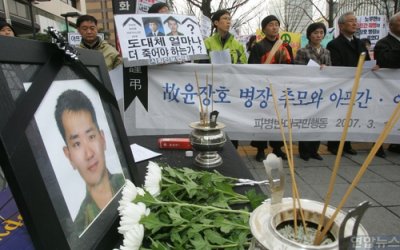 '파병반대국민행동'도 광화문 미국 대사관 인근에서 아프간·이라크 철군을 위한 기자회견을 연 뒤 고 윤장호 병장을 추모하는 시간을 갖기도 했다.