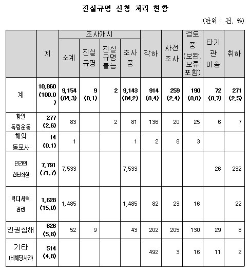진실화해위가 이렇게 9000건이 넘는 과거사 사건에 대한 조사를 개시했지만, 현재 인력과 예산, 조사기간이 부족해 관련법 개정이 시급한 것으로 파악됐다.