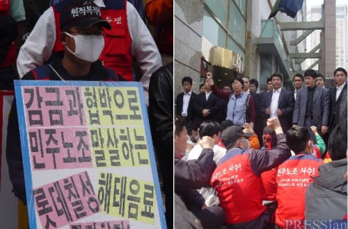 김정일 씨는 "가판과 덤핑판매로 신음하는 노동자들이 잘못된 관행을 청산하자고 노조를 만든 것이 그렇게 두렵냐"며 "롯데칠성을 비롯한 회사들이 노조의 단체교섭 요구에 응하지 않는다면 불매운동까지 벌일 계획"이라고 강조했다.
